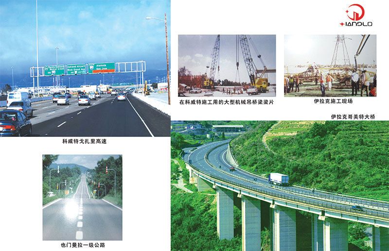 2003年獲商務(wù)部頒發(fā)的中華人民共和國(guó)對(duì)外承包工程經(jīng)營(yíng)資格證書(shū),并取得了ISO9000國(guó)際質(zhì)量體系認(rèn)證、環(huán)境管理體系認(rèn)證、職業(yè)健康安全管理體系認(rèn)證。在國(guó)外先后承建了也門(mén)曼拉一級(jí)公路、伊拉克哥美特大橋、科威特加爾汗大橋等工程項(xiàng)目。